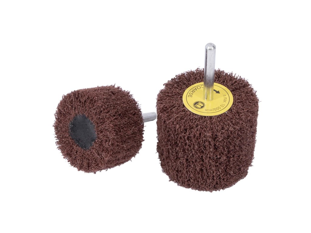 Brusný vliesový kotouč na stopce je určen k broušení a leštění kovu, dřeva, koroze, starých natěrů atd. Upnutí kotouče je válcová stopka 6 mm.