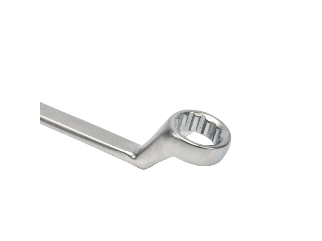 Vyhnutý očkový oboustranný klíč pro utahování zapuštěných šroubů a matic.