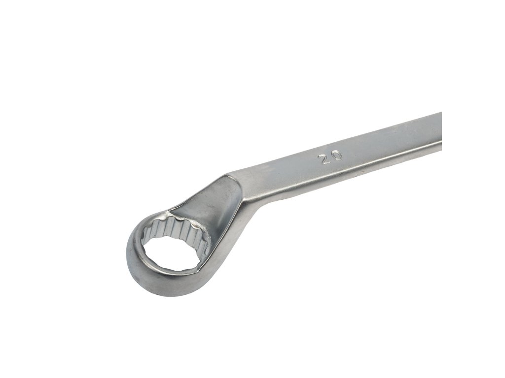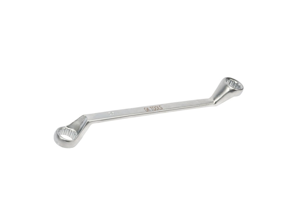 Vyhnutý očkový oboustranný klíč pro utahování zapuštěných šroubů a matic.