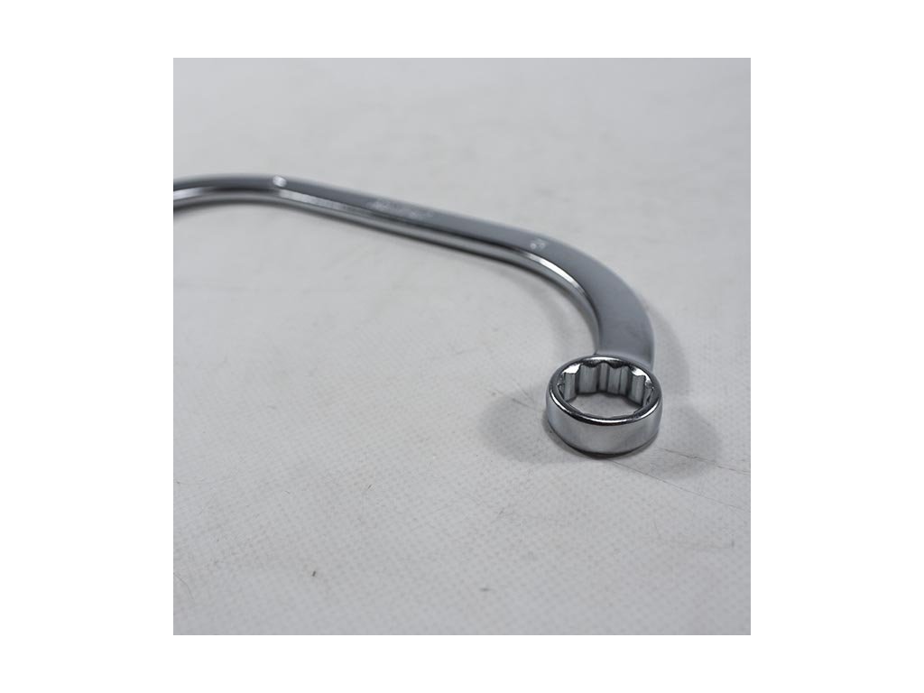Očkový zahnutý klíč s velikostmi 10 a 12 mm, vhodný pro práci na méně přístupných místech.