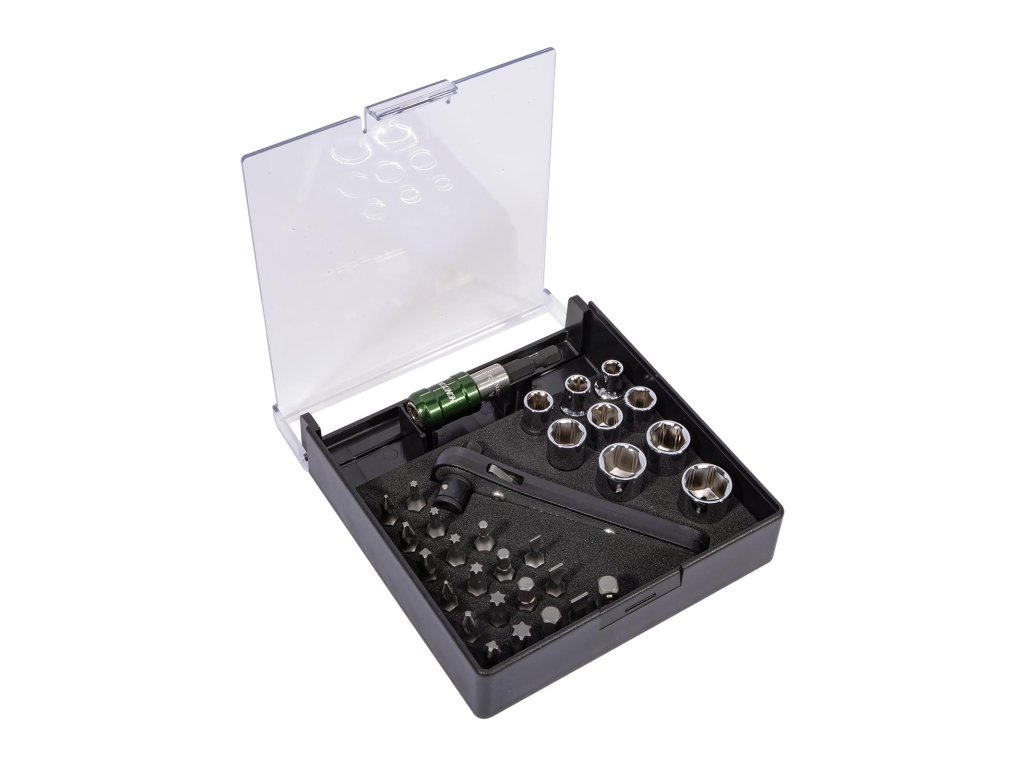 | Bity 1/4": | PL4.5, PL5.5, PL6.5; PH1, PH2, PH3; PZ1, PZ2, PZ3; IMBUS: 3, 4, 5, 6 mm; TRX: T10, T15, T20, T25, T30, T40 |