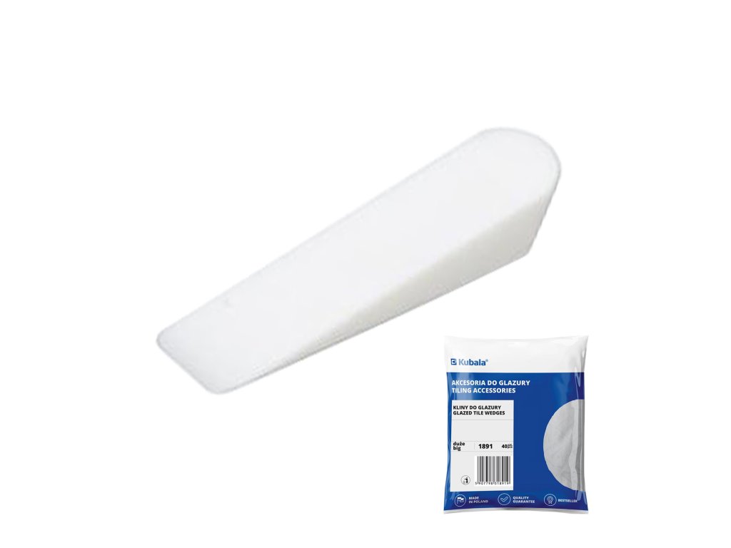 Distanční klínky malé jsou určeny pro obkladačské práce při pokládce obkladů a dlažby. Slouží k přesnému vyrovnání a fixaci jednotlivých dlaždic během instalace. Vyrobeny jsou z plastu v bílé barvě a díky kompaktním rozměrům jsou vhodné pro jemné dorovnání spár a výšky obkladů.