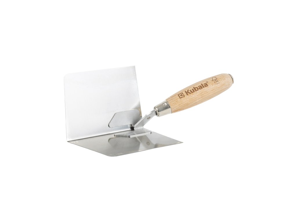 KUBALA Lžíce štukatérská nerezová, rohová vnitřní, dřevěná rukojeť | 97x140 mm