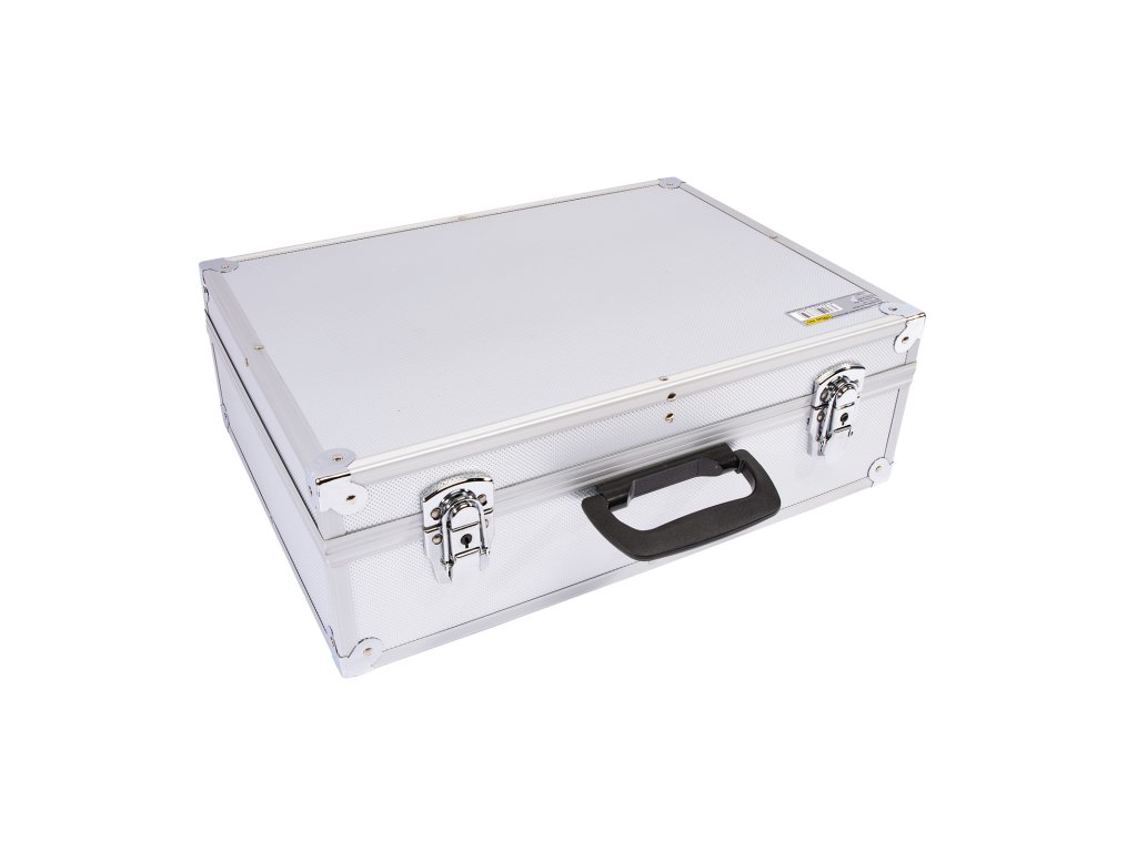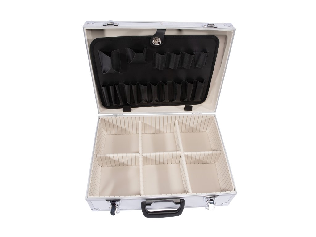 Hliníkový kufr na nářadí má nastavitelné vnitřní přihrádky, které umožňují libovolně přestavět na oddíly.