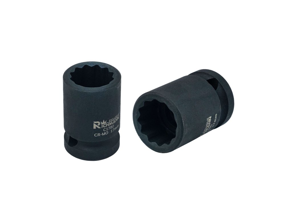 Nástrčná hlavice vyrobená z Cr-Mo oceli pro vysokou pevnost a dlouhou životnost. Navržena pro použití s pneumatickými a aku rázovými utahováky, ideální pro náročné profesionální nasazení v autoservisech a průmyslové údržbě. Dvanáctihranný profil zajišťuje pevný úchop a rovnoměrné rozložení síly při utahování a povolování šroubů.