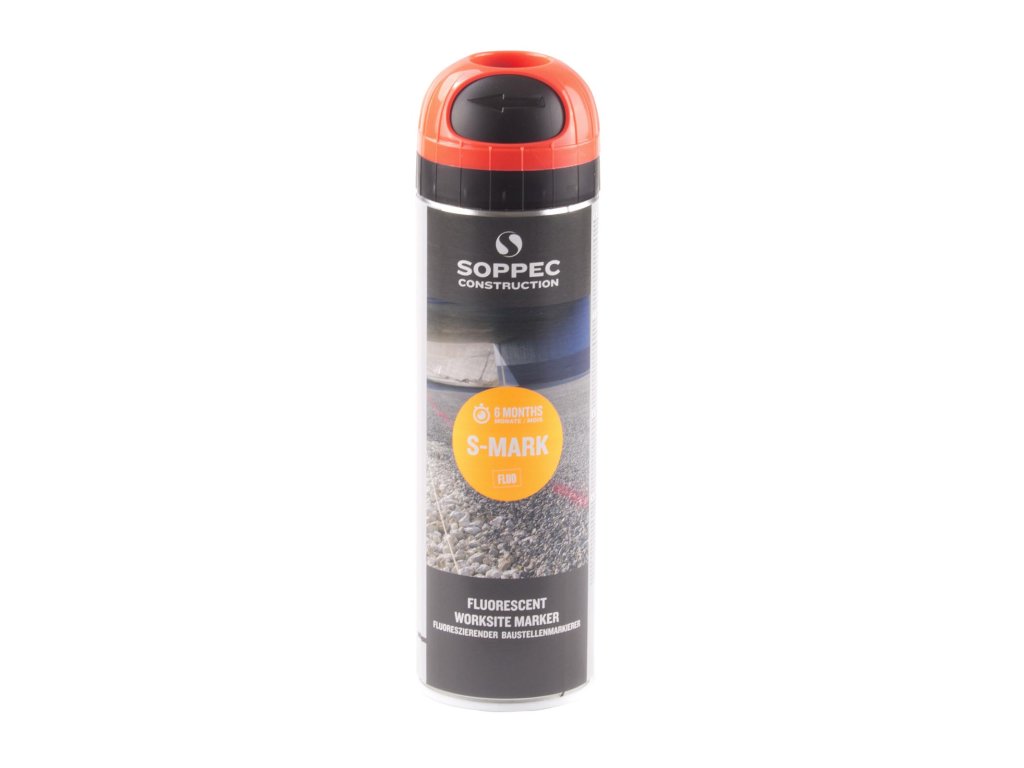 Francouzský značkovací sprej se směrovou tryskou pro postřik na zem. Produkt je vhodný pro aplikaci na různé druhy pochozích povrchů. Je skvělou pomůckou pro geodety, stavbaře, technickou správu komunikací, vytyčování staveb, označování výkopů, skrývek, skládek, frézování, oprav povrchu vozovek apod. Jedná se o fluorescentní značkovací barvu s vysokou jasností. Teplotní rozsah použití se pohybuje od -20°C do +50°C. Viditelnost značky až 6 měsíců v závislosti na podmínkách prostředí. Výrobek neškodí životnímu prostředí, barva neobsahuje (toulen, xylen).