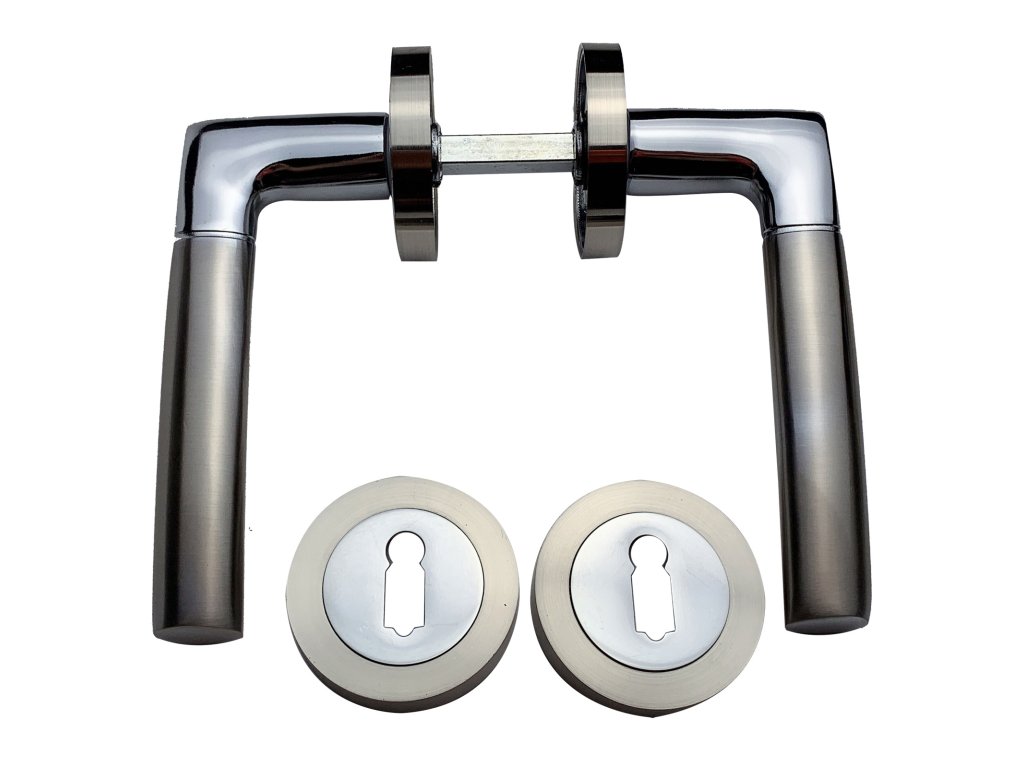 Kompletní kování na jedny dveře včetně spojovacího materiálu.