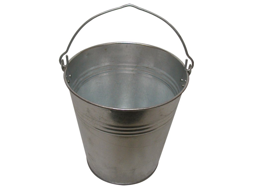Pozinkované vědro o objemu 10 litrů, univerzální použití na stavbě i v domácnosti.