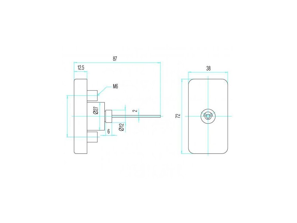 Ocelové táhlo o průřezu 2 x 7 mm je spojeno s bubínkem a na svém volném konci zapadá do unašeče vlastního zámku. Délku táhla je třeba upravit při montáži podle tloušťky dveří.