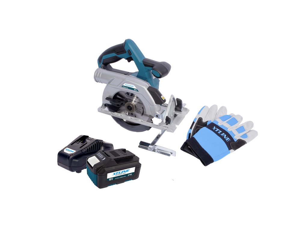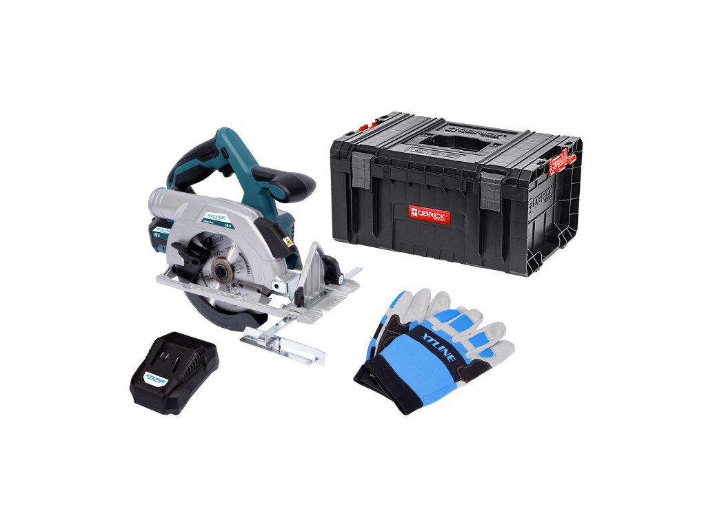 XTLINE Aku kotoučová pila bezuhlíková 18 V, 165 mm + baterie 5.0 Ah + nabíječka 3.5 A + box