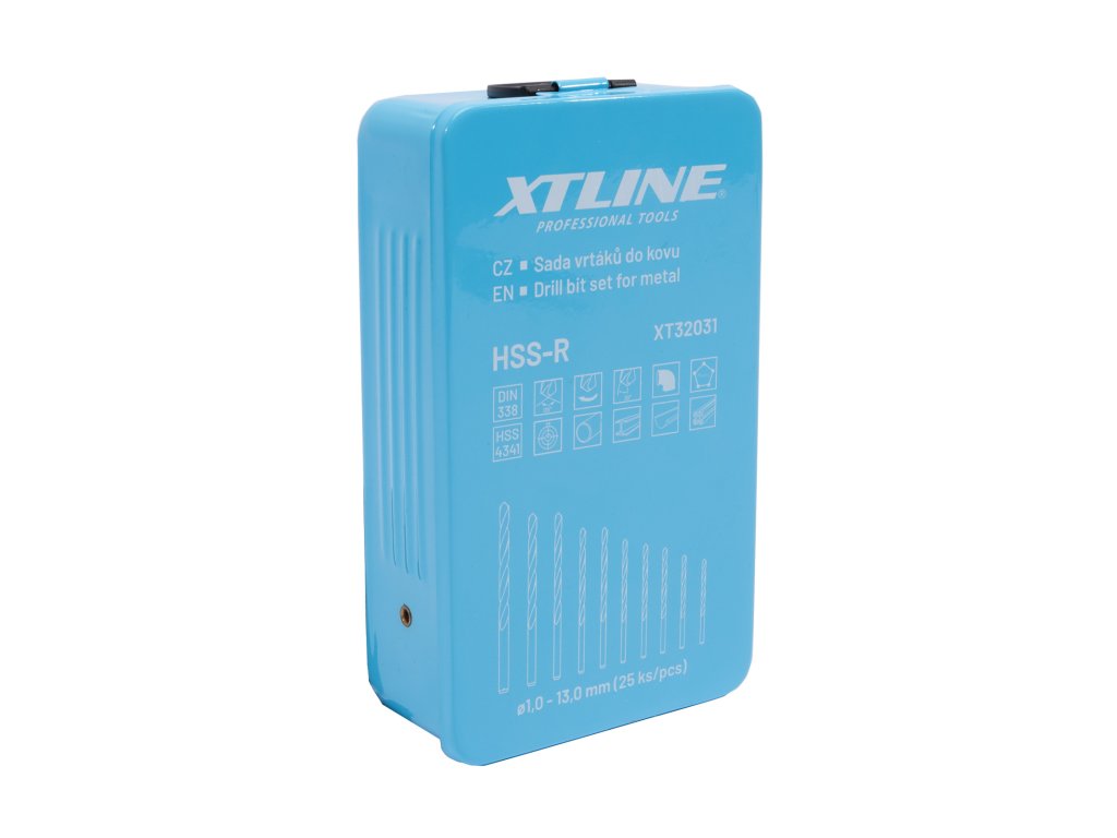 XTLINE Sada vrtáků do kovu HSS-R | 1-13 mm 25 dílů, kovový obal