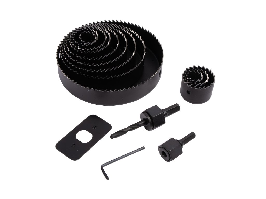 | Součást balení: | 2x unašeč + vodící vrták, imbus klíč, vykružovací korunky 19-127 mm |