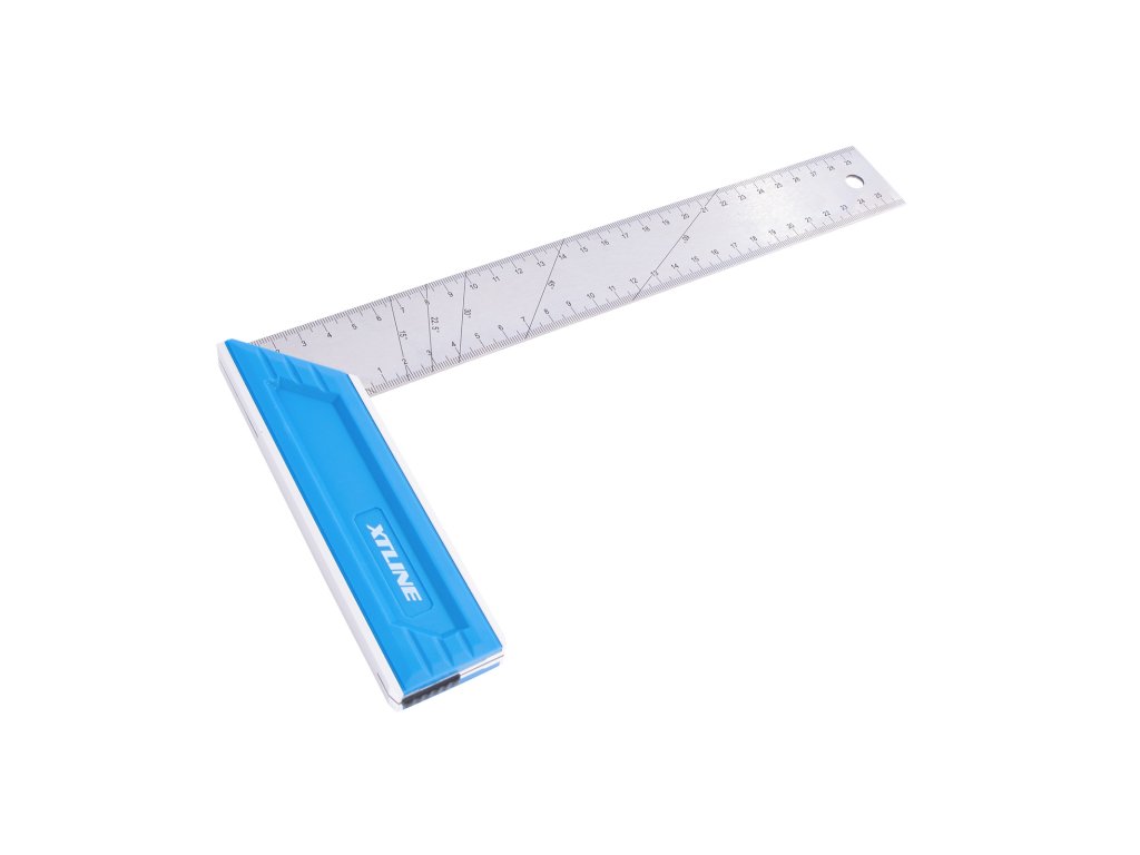 Praktický příložný úhelník s přesným metrickým značením s výbornou čitelností, nerezovým pravítkem a držadlem z kvalitní slitiny hliníku a plastu. Zabudovaný výsuvný doraz v držadle nabízí vynikající komfort a přesnost při práci bez nutnosti přidržovat úhelník rukou (90°). Pravítko má předznačené úhly 15°, 22,5°, 30°, 45° a 60°.