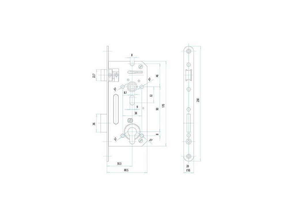 Zámek zadlabací FAB 5140/18 protipožární Pravý